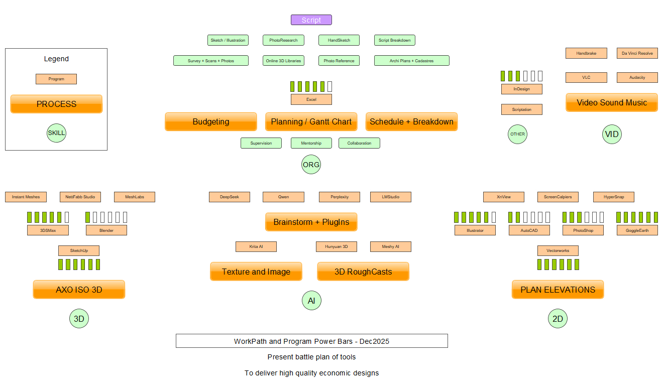 The millennium turned, and I went 3D. I picked up 3D Studio Max in 1999 for modelling. By 2001, MiniCAD had morphed into Vectorworks, and I used it to design sets for The Bourne Identity. (I can neither confirm nor deny if I designed an escape route for Matt Damon. I’d like to call a lawyer please).